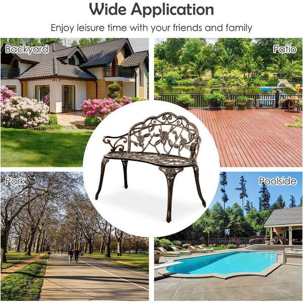 2-Person Bronze Cast Aluminum Patio Garden Outdoor Bench Chair
