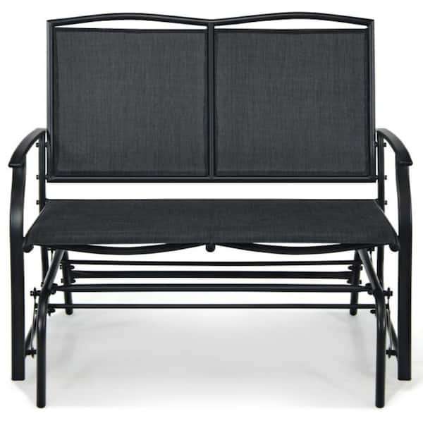 2-Person Steel Frame Patio Glider Rocking Metal Outdoor Bench in Black