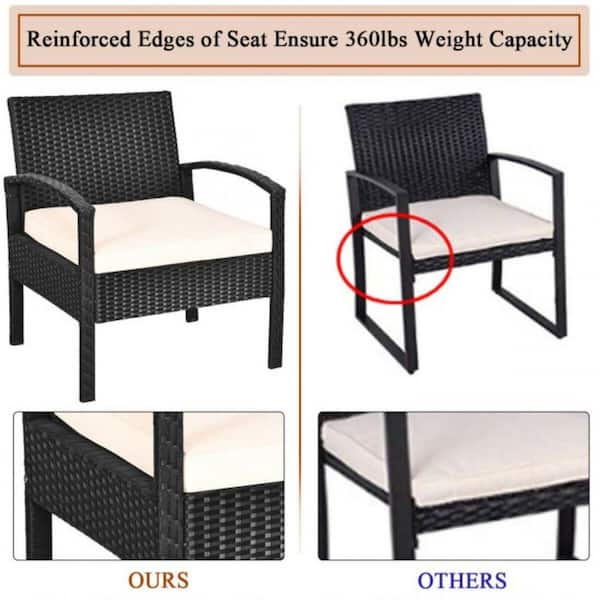 3-Piece Wicker Patio Conversation Set with White Cushions