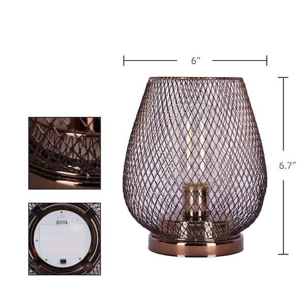 6 .7 in. Bronze Indoor Battery-Operated Integrated LED Metal Mesh Lamp