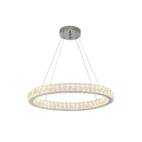 Display 26-Watt Chrome Integrated LED Pendant with Clear Crystals
