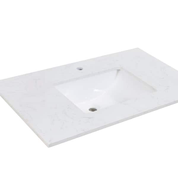 37 in. W x 22 in. D Engineered Composite Stone Vanity Top in White with White Single Basin