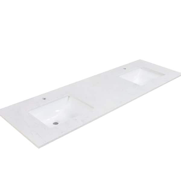 73 in. Engineered Composite Stone Double Basin Vanity Top in White with White Basins