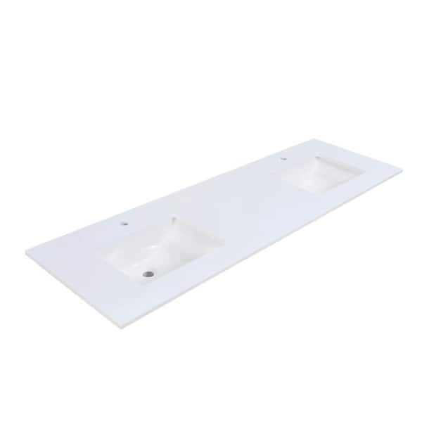 73 in. W Engineered Composite Stone Double Basin Vanity Top in White with White Basins