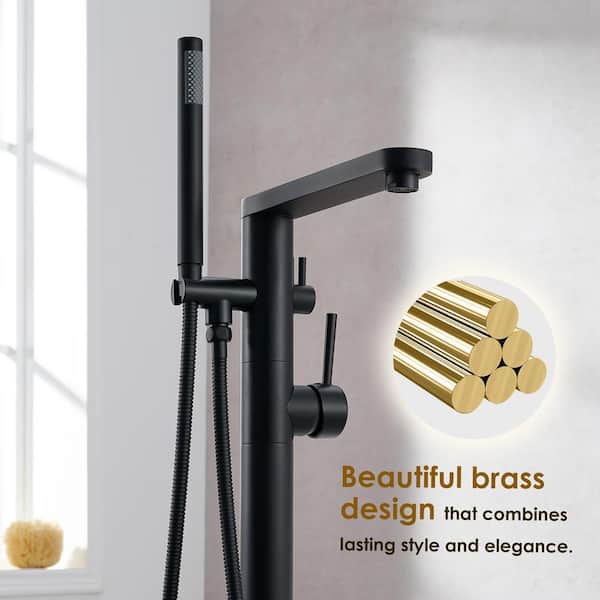 Allario 2-Handle Freestanding Tub Faucet with Handshower in Matte Black