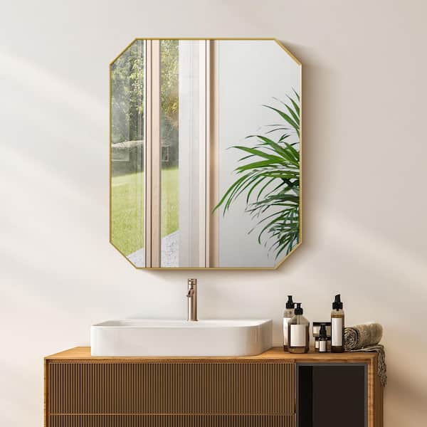 Allure 36 in.W x 30 in.H Octagon Aluminum Framed Wall Mounted Bathroom Vanity Mirror in Brushed Gold