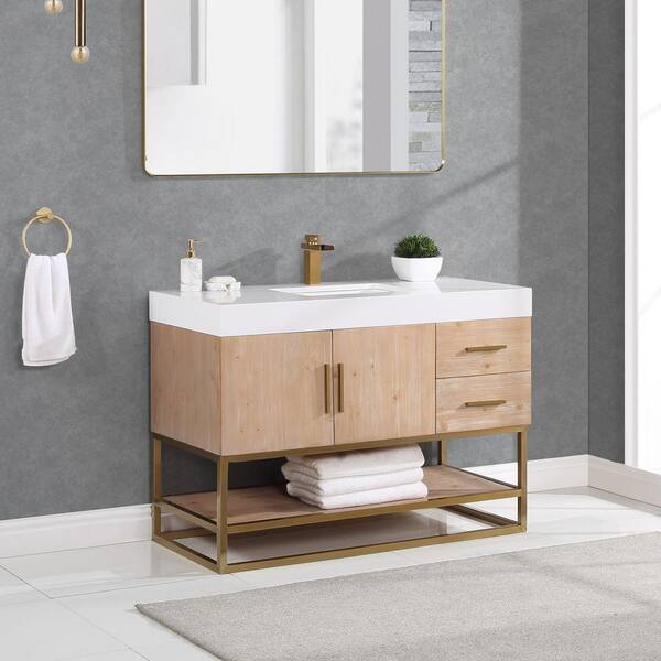 Bianco 48 in. W x 22 in. D x 34 in . H Single Sink Bath Vanity in Light Brown with White Composite Stone Top
