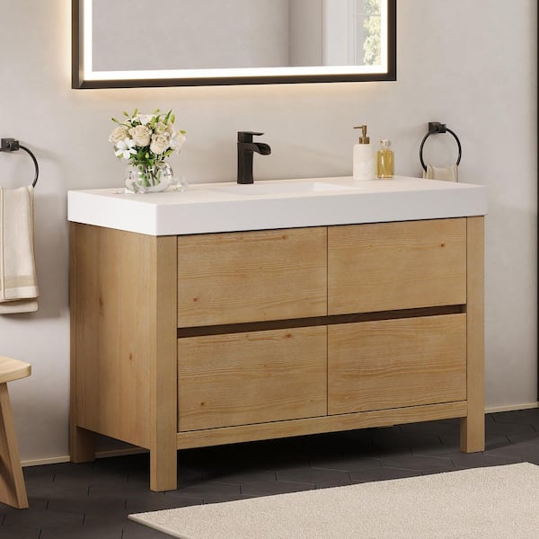 Cascadia 48 in. Single Freestanding Weathered Fir Bath Vanity with White Artificial Stone Top Assembled
