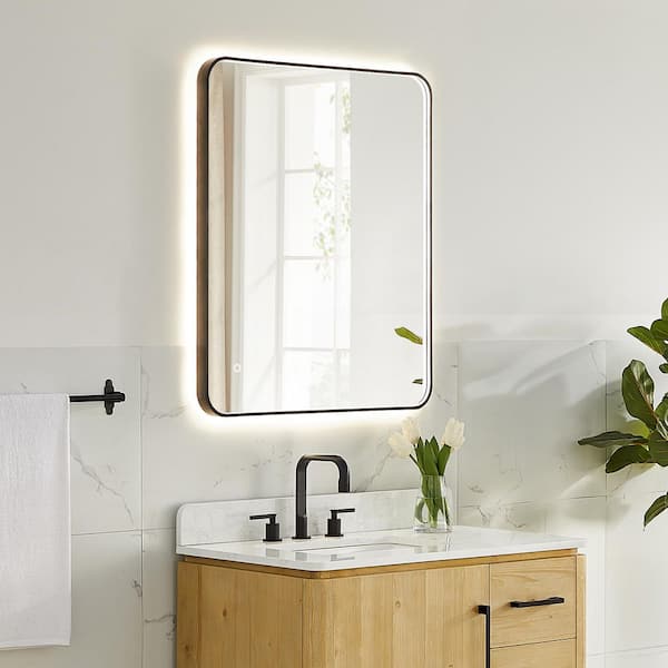 Dazzle 36 in.W x 30 in.H Rectangular Aluminum Framed LED Wall Mounted Bathroom Vanity Mirror in Matte Black