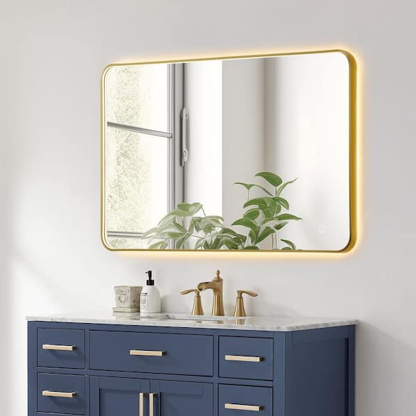 Dazzle 48 in.W x 30 in.H Rectangular Aluminum Framed LED Wall Mounted Bathroom Vanity Mirror in Brushed Gold