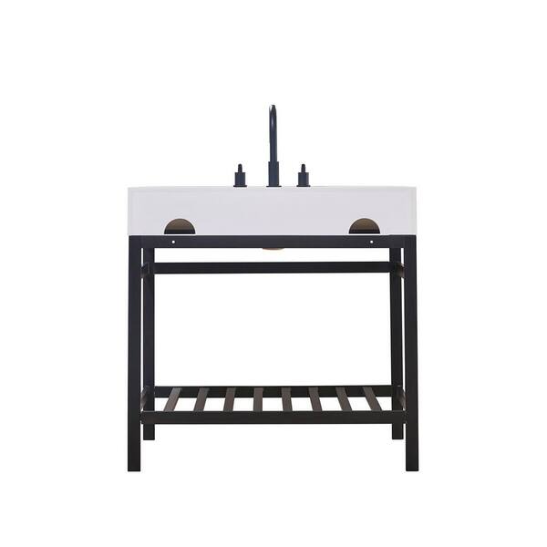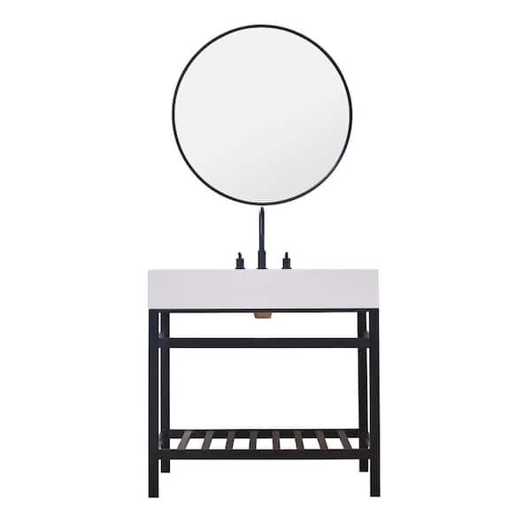 Edolo 36 in. W x 22 in. D x 35 in. H Single Sink Bath Vanity in Matt Black with White Composite Stone Top and Mirror