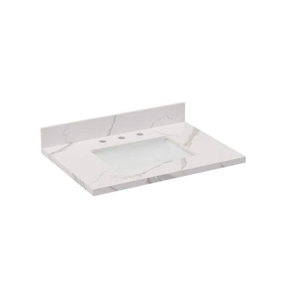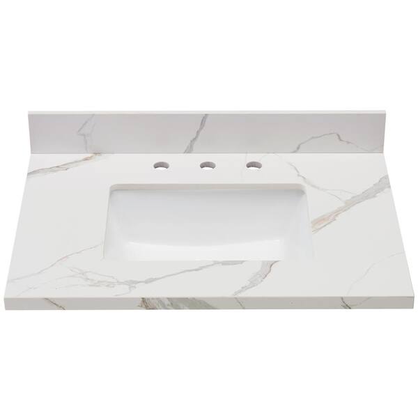 Eivissa 31 in. W x 22 in. D Sintered Stone Vanity Top in Calacatta White with White Rectangular Single sink