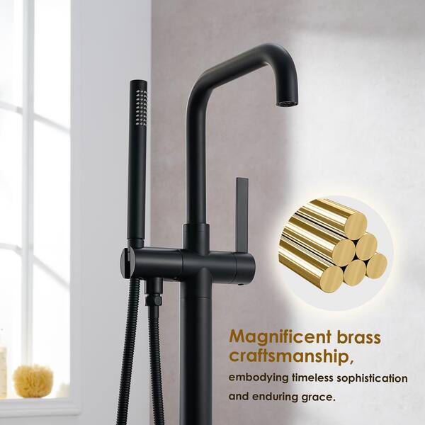 Florin Single-Handle Freestanding Tub Faucet with Handshower in Matte Black