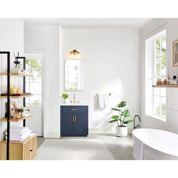Gavino 30 in. W x 22 in. D x 34 in. H Single Sink Bath Vanity in Royal Blue with White Composite Stone Top and Mirror
