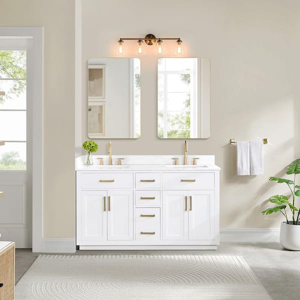 Gavino 60 in. W x 22 in. D x 34 in. H Bath Vanity in White with Grain White Composite Stone Top