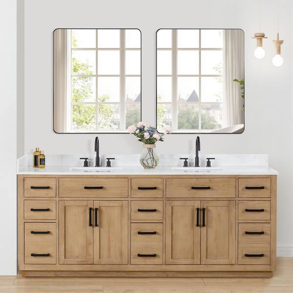Gavino 84 in.W x 22 in.D x 34 in.H Bath Vanity in Light Brown with Grain White Composite Stone Top and Mirror