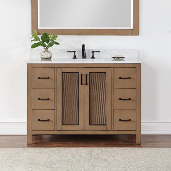 Hadiya 48 in. W x 22 in. D x 34 in. H Bath Vanity in Brown Pine with Carrara White Composite Stone Top
