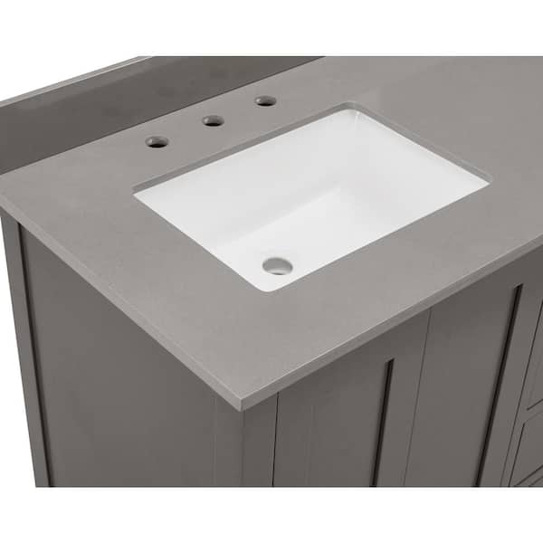 Madrid 61 in. W x 22 in. D Composite Stone Vanity Top in Concrete Grey with White Rectangular Double Sinks