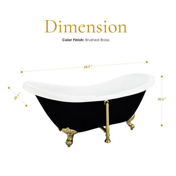 Porva 69 in. Acrylic Clawfoot Soaking Bathtub in Glossy Black