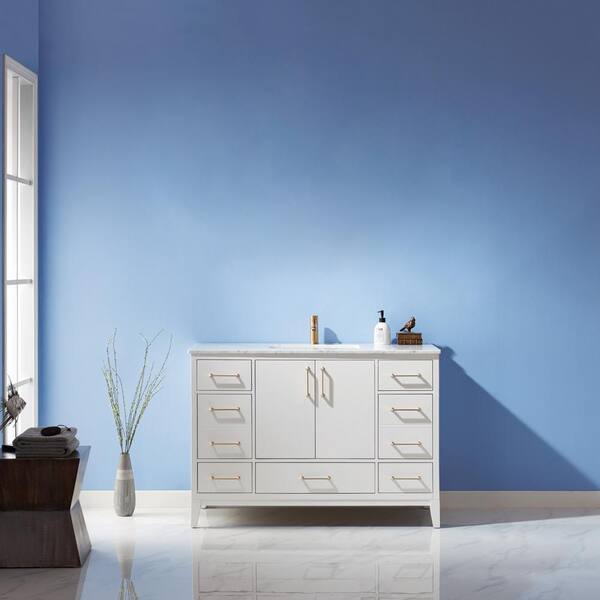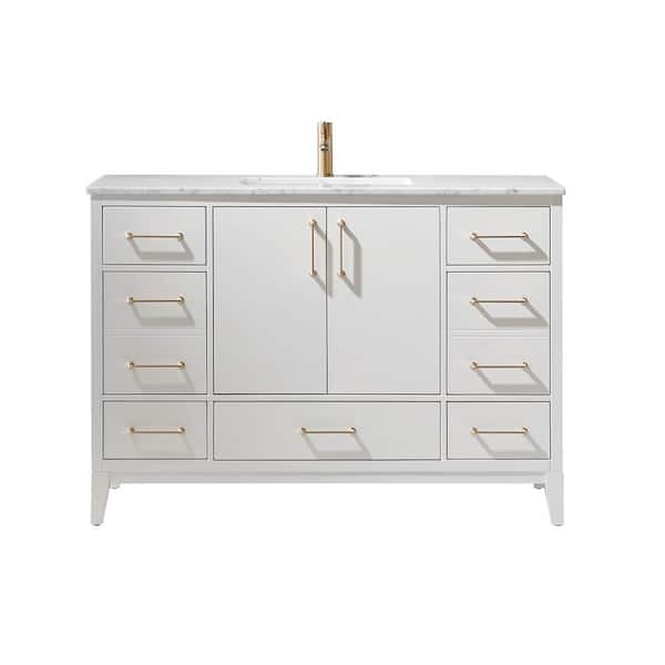Sutton 48 in. Bath Vanity in White with Carrara Marble Vanity Top in White with White Basin