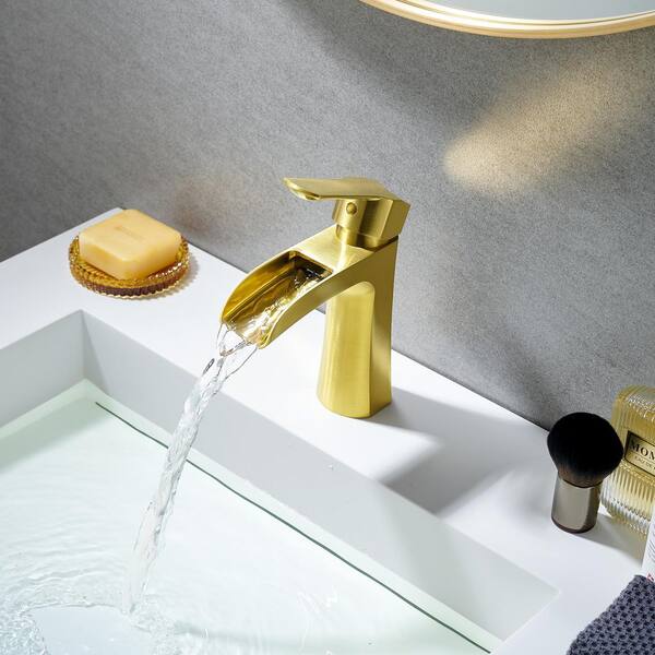 Tatcha Single Hole Single Handle Low Arc Bathroom Faucet in Brushed Gold