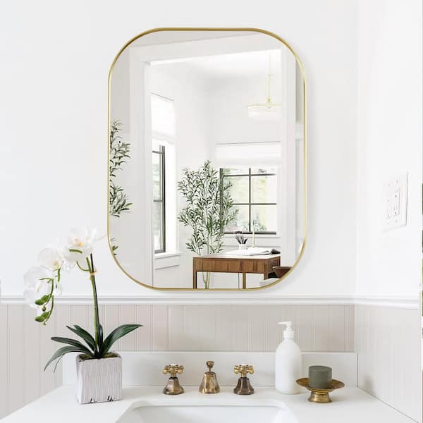 Trielle 24 in.W x 32 in. H Rectangular Aluminum Framed Wall Mounted Bathroom Vanity Mirror in Brushed Gold