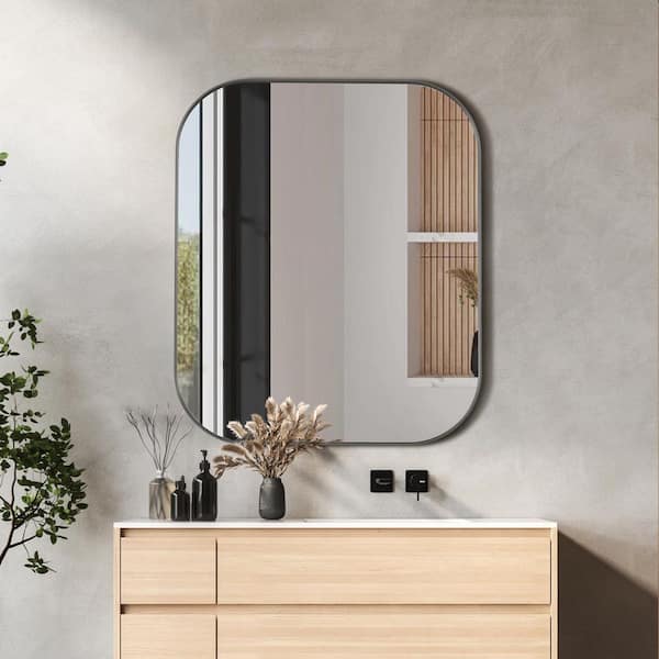 Trielle 36 in.W x 30 in. H Rectangular Aluminum Framed Wall Mounted Bathroom Vanity Mirror in Gunmetal