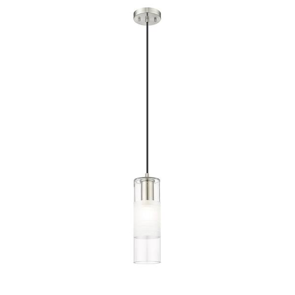 Alton 4.75 in. 1-Light Brushed Nickel Shaded Pendant Light with Clear Plus Frosted Glass Shade, No Bulbs Included
