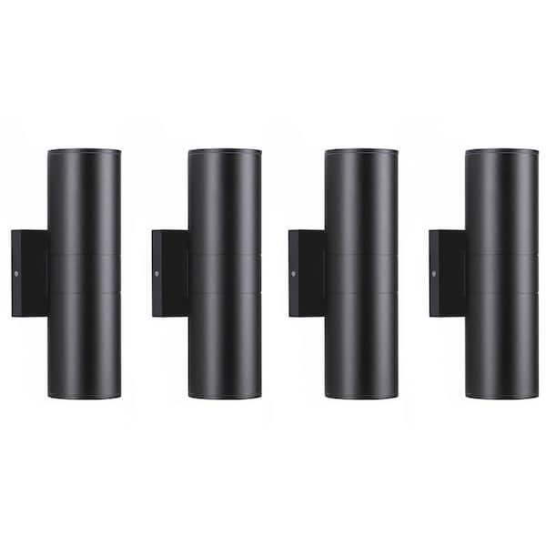 Aluminum 12- Watt Equivalent Integrated LED Black Cylinder Wall Sconce Indoor/Outdoor Wall Pack Light, 2700K (4-Pack)