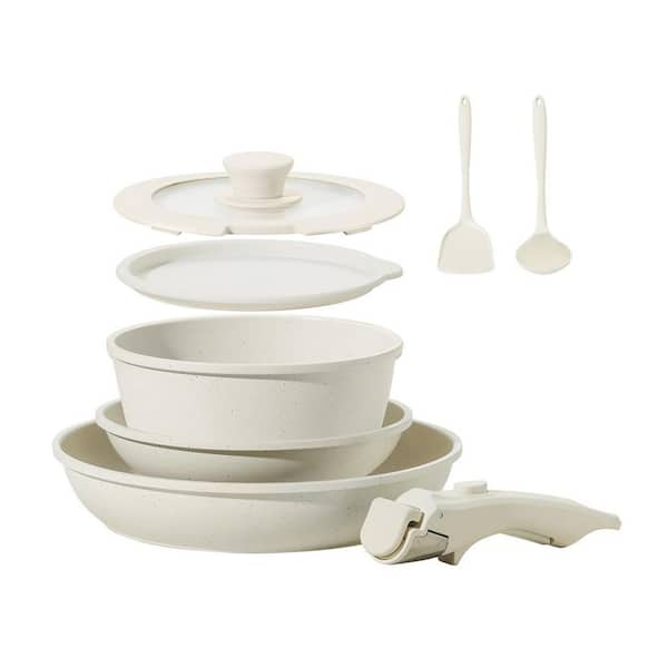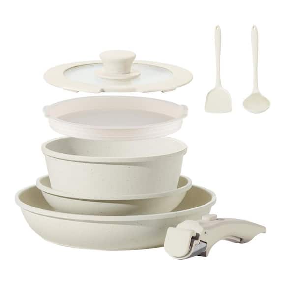 Aluminum 8pcs Ceramic Non Stick Cookware Set Detachable Handle Induction Safe Stackable Oven Safe Kitchen Cooking Set