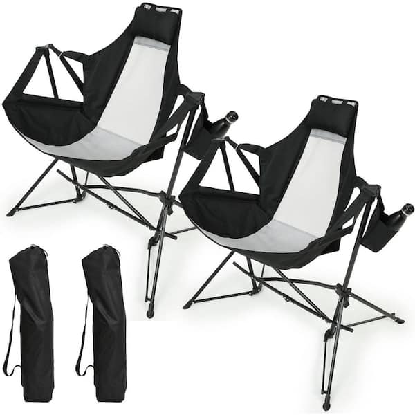 Aluminum Folding Portable Chair Recliner with Adjustable Back Cup Holder for Outdoor Travel Lawn Backyard Black (2pcs)