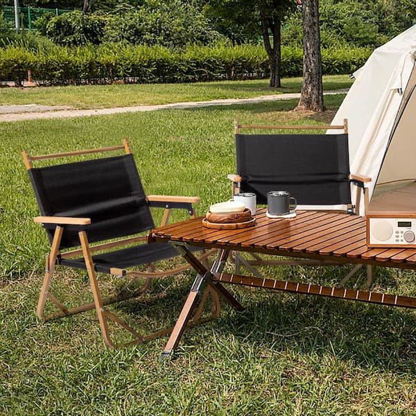 Aluminum Frame Folding Lawn Chair Black Oxford Fabric and Khaki