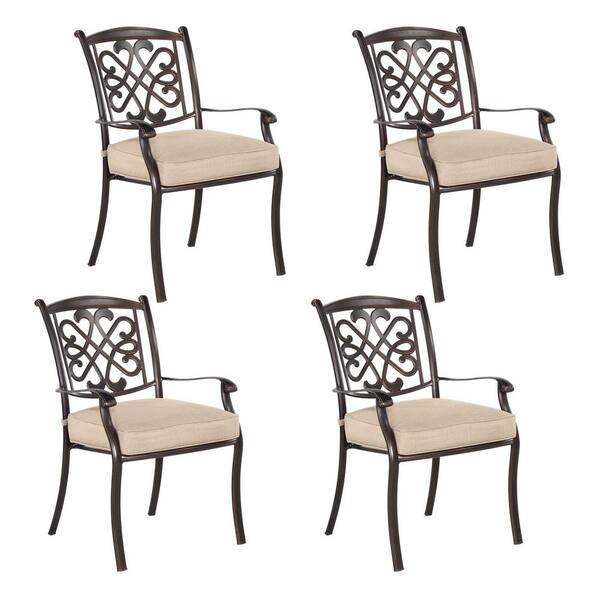 Aluminum Patio Dining Chairs with Thick Beige Seat Cushions, All-Weather Outdoor Stackable Bistro Chairs (4-Pack)