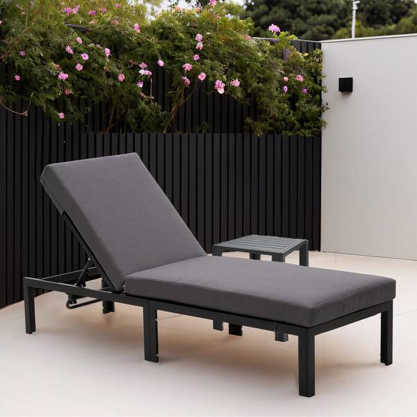 Aluminum Patio Lounge Chair Outdoor with Adjustable 5-Position Recliner for Patio, Beach, Pool, Gray