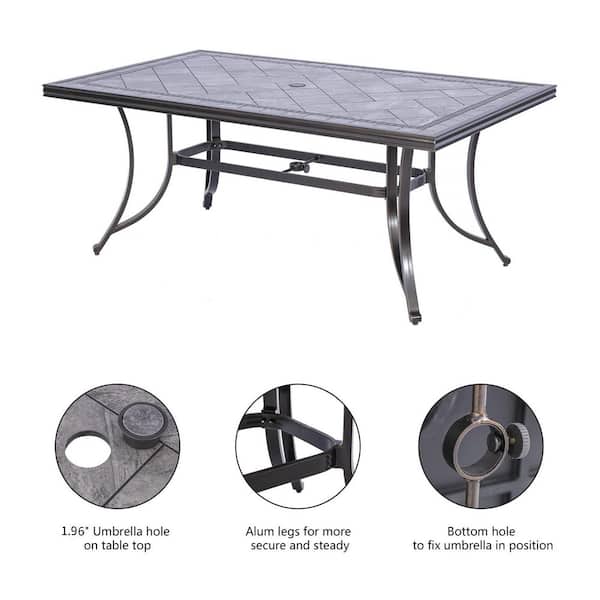 Aluminum Patio Rectangle Dining Table with Tile Top, All-Weather Outdoor Table with Umbrella Hole, 66.1 in. L x 36 in. W