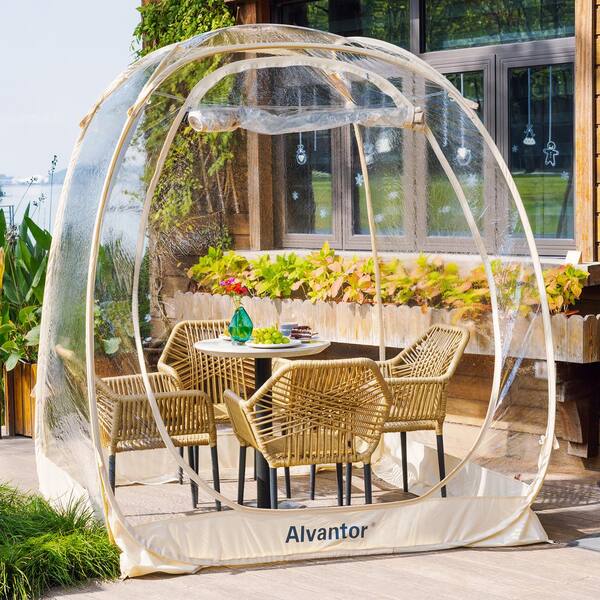 6 ft. x 6 ft. Beige Instant Pop Up Bubble Tent Screen House, Weatherproof Cold Protection 360 View Camping Tent