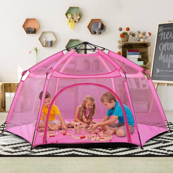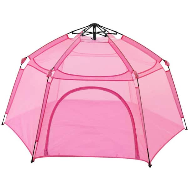 84 in. x 84 in. x 44 in. Pink Pop Up Portable Play Yard Canopy Tent, Kids Playpen Fully Enclosed Mesh Top, No Waterproof