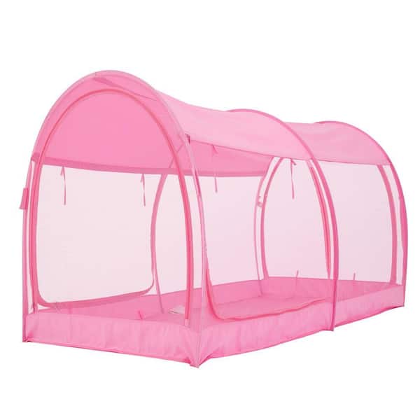 Indoor Pop Up Portable Frame Mosquito Net Bed Canopy Tent Full Curtains Breathable Pink Cottage (Mattress Not Included)