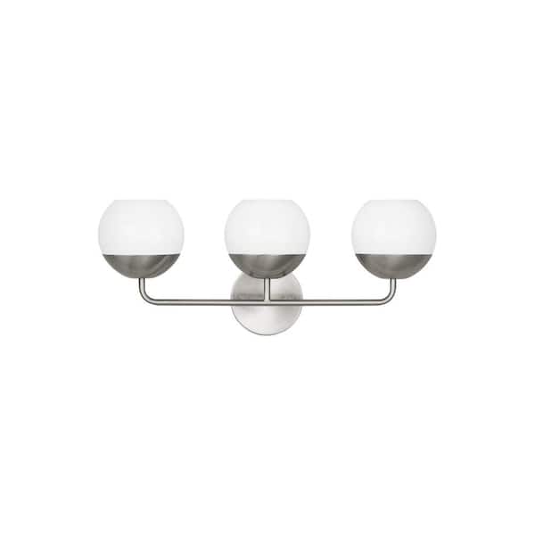 Alvin 24.125 in. 3-Light Brushed Nickel Vanity Light with Milk Glass Shades