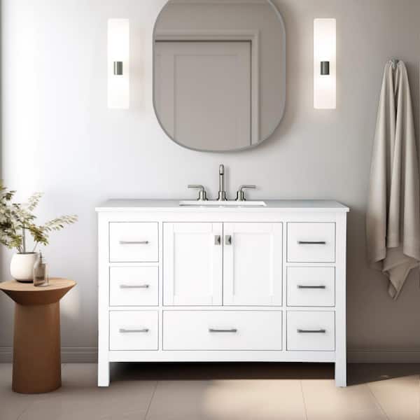 Vanea 48 in. Freestanding White Bath Vanity with White Quartz Top
