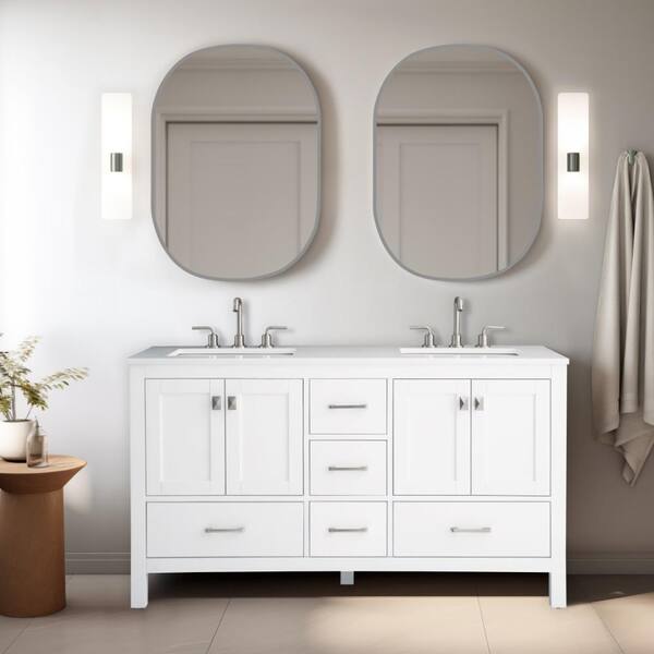 Vanea 60 in. Double Freestanding White Bath Vanity with White Quartz Top