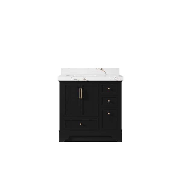Alys 36 in. W x 22 in. D x 36 in. H Left Offset Single Sink Bath Vanity in Black with 2 in. Viola Brown qt Top
