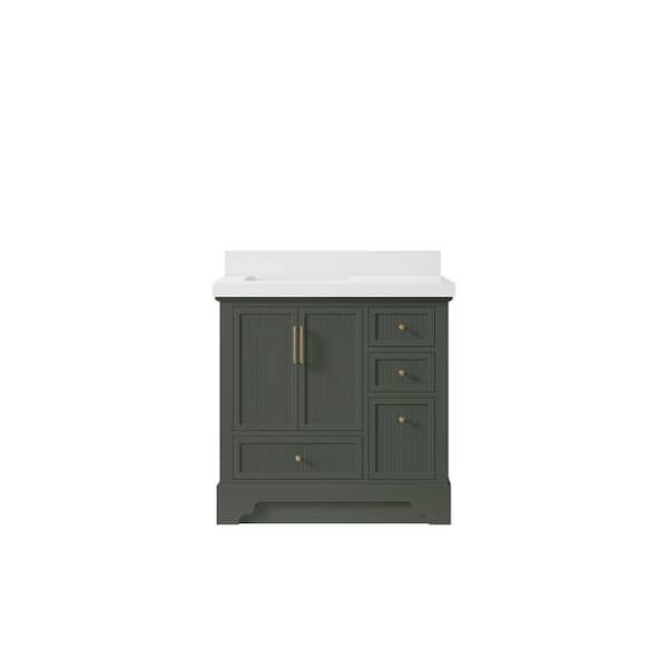 Alys 36 in. W x 22 in. D x 36 in. H Left Offset Sink Bath Vanity in Pewter Green with 2 in. White Qt. Top