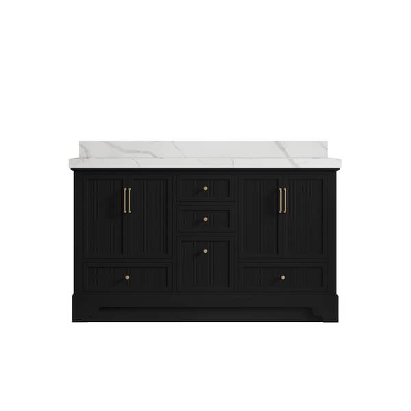 Alys 60 in. W x 22 in. D x 36 in. H Double Sink Bath Vanity in Black with 2 in. Calacatta Laza Top