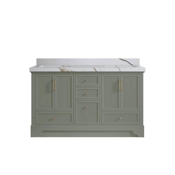 Alys 60 in. W x 22 in. D x 36 in. H Double Sink Bath Vanity in Evergreen with 2 in. Calacatta Gold Top