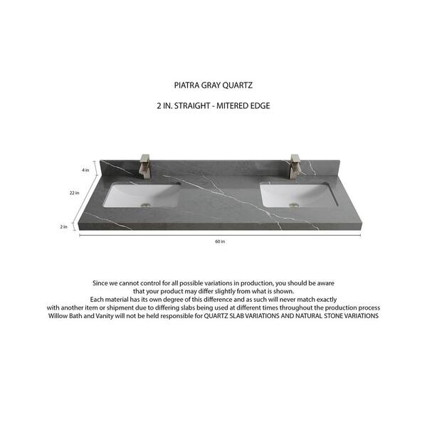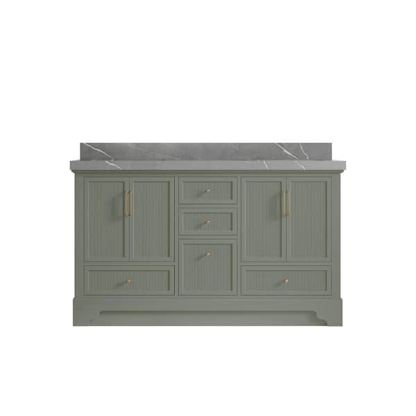 Alys 60 in. W x 22 in. D x 36 in. H Double Sink Bath Vanity in Evergreen with 2 in. Piatra Quartz Top