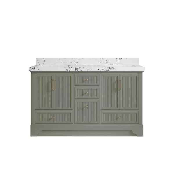 Alys 60 in. W x 22 in. D x 36 in. H Double Sink Bath Vanity in Evergreen with 2 in. Viola Night Top