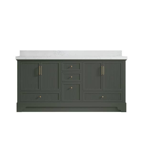 Alys 72 in. W x 22 in. D x 36 in. H Double Sink Bath Vanity in Pewter Green with 2 in. Empira Quartz Top
