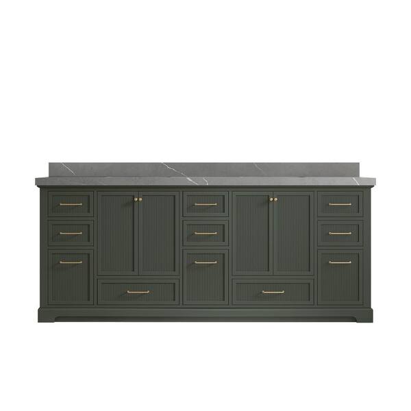 Alys 84 in. W x 22 in. D x 36 in. H Double Sink Bath Vanity in Pewter Green with 2 in. Piatra Quartz Top