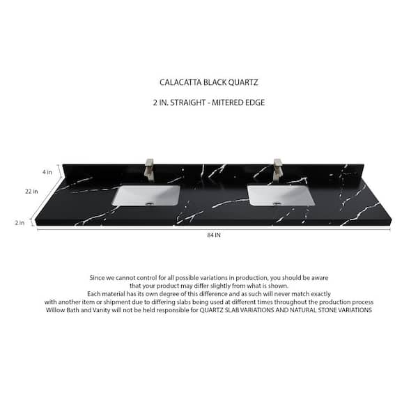 Alys 84 in. W x 22 in. D x 36 in. H Double Sink Bath Vanity in White with 2" Calacatta Black Quartz Top
